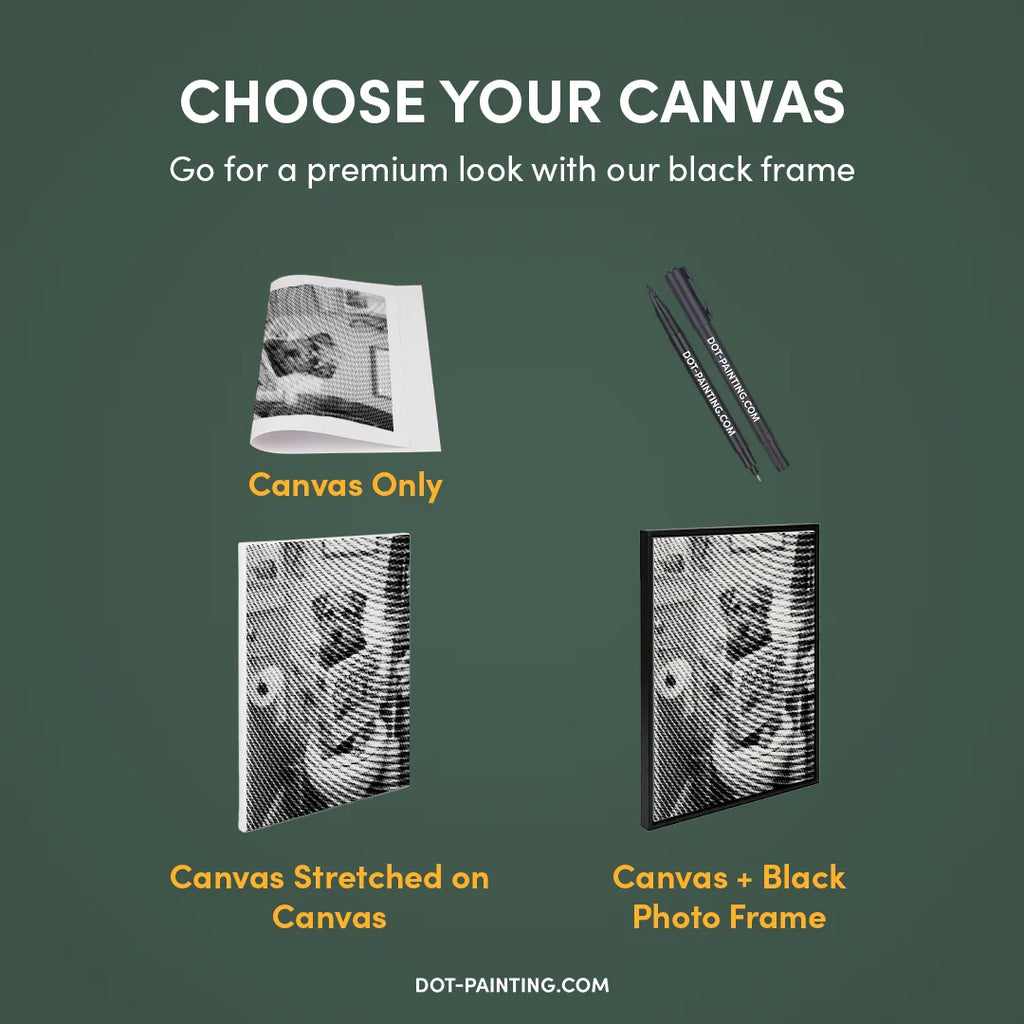 • 1x Premium Canvas (Rolled): High-quality canvas featuring your chosen design. We ship it rolled in a hard tube never folded so you start with a smooth, wrinkle-free surface.